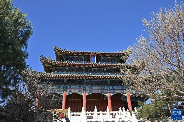 景山公园山顶的万春亭(3月15日摄)。新华社记者 李鑫 摄