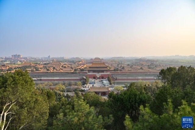 从景山上拍摄的故宫(3月29日摄)。始建于1406年的故宫是世界上现存规模最大、最完整的古代木构宫殿建筑群,位于北京中轴线的中心。1987年联合国教科文组织将其列入世界文化遗产名录。新华社记者 李鑫 摄
