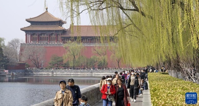 游客在参观故宫(3月19日摄)。始建于1406年的故宫是世界上现存规模最大、最完整的古代木构宫殿建筑群,位于北京中轴线的中心。1987年联合国教科文组织将其列入世界文化遗产名录。新华社记者 李欣 摄