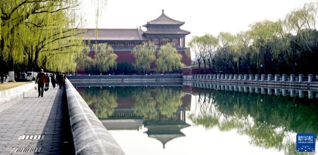 故宫午门附近景色(3月19日摄)。始建于1406年的故宫是中国明清两代的皇家宫殿,旧称紫禁城,位于北京中轴线的中心。它是中国至今保存最大最完整的古代宫殿建筑群,1987年联合国教科文组织将其列入世界文化遗产名录。新华社记者 李欣 摄