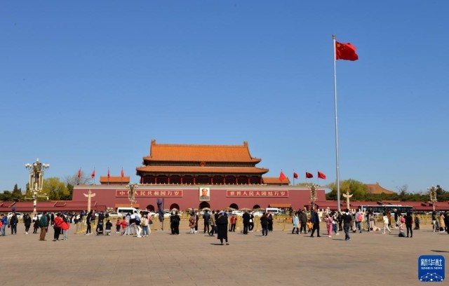 游客在天安门广场游览(3月18日摄)。新华社记者 任超 摄
