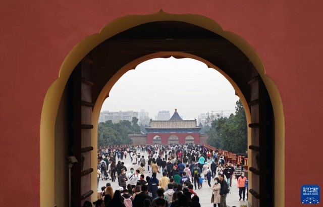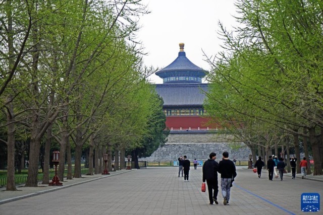 游客在天坛游览(4月2日摄)。天坛始建于明永乐十八年(1420年),是世界上现存规模最大、保存最完整的古代祭天建筑群,1998年被列入世界文化遗产名录。新华社记者 穆问春 摄