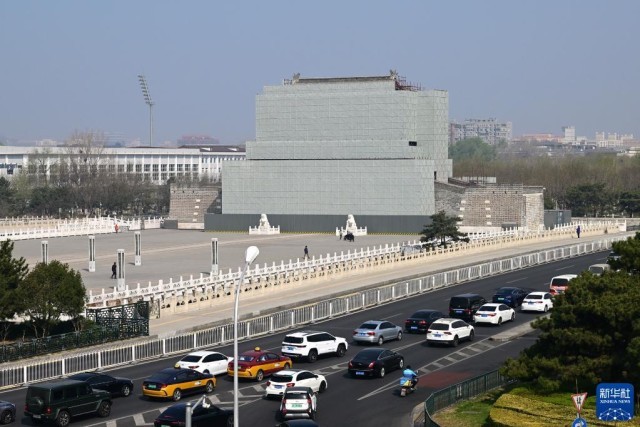 修缮维护中的永定门(3月28日摄)。新华社记者 李贺 摄