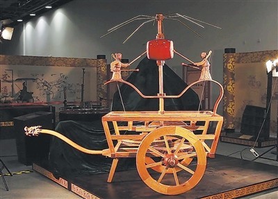 “记里鼓车”多次出现在不同朝代的历史故事和记载中。如公元417年,刘裕击败秦军,缴获了记里鼓车、指南车等大量战利品;成书于唐代的《晋书·舆服志》也记载了记里鼓车;晋代《古今注》还记载了一种升级版的记里鼓车,这种记里鼓车不仅每行进一里就有木人击一次鼓,在行进十里时还另有木人击一次镯(古代军乐器,形似小钟),其机械结构应当更加复杂。《宋史·舆服志》记载,宋代皇帝仪仗已经使用这种升级版的记里鼓车。