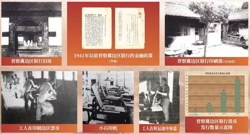 晋察冀抗日根据地,是抗日战争时期中国共产党领导的八路军在敌后创建的第一个根据地。1938年3月20日,晋察冀边区政府根据形势的发展和边区人民的迫切需求,在山西五台县石嘴村成立了“晋察冀边区银行”,首批发行自己设计印制的壹元券和伍元券。边区银行下设冀中、冀晋、冀察三个分行及各专区办事处。晋察冀边区银行从初创的1938年到1948年第一套人民币诞生前的10年里,历经血与火、生与死的残酷斗争的考验,胜利完成“筹集军费、打击杂钞、保护经济”的特殊使命。