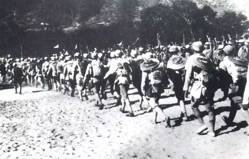 1937年10月,八路军第一一五师一部进入五台山地区,通过组织群众武装,建立起根据地。图为聂荣臻副师长率领部队进入五台山地区。