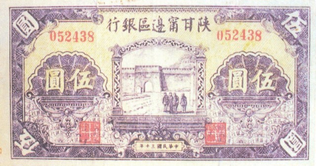 1941年陕甘宁边区银行伍圆券。