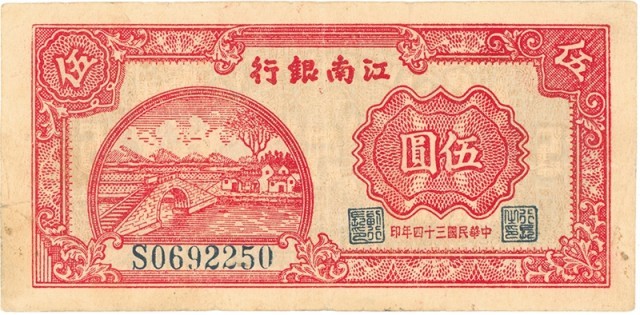 1945年江南银行伍圆券。