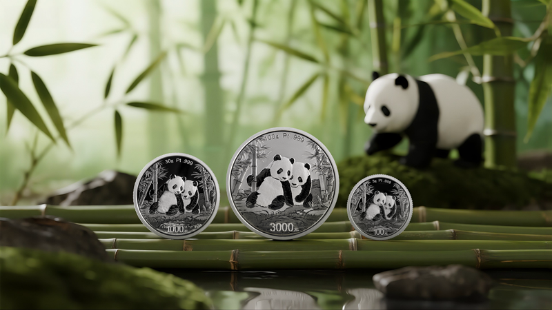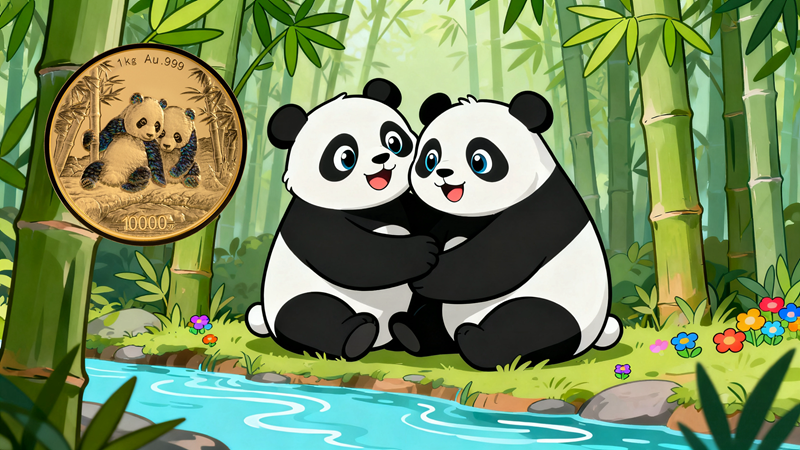 2026版熊猫贵金属纪念币是“爱的十年”系列的第八版,故事已经进入后半程,熊猫已然长大了,要恋爱了,这一版熊猫币的主题故事是“爱的憧憬”。