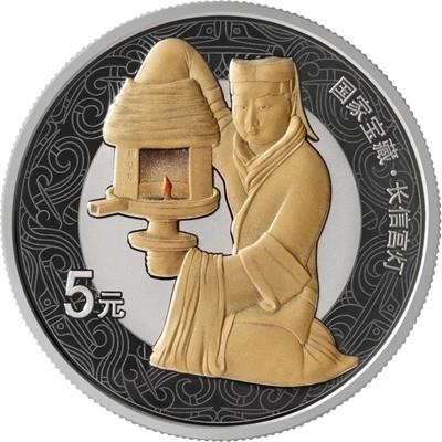 国家宝藏(统一气象)15 克银币(长信宫灯)。