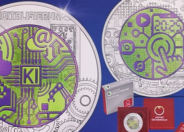 2025年奥地利发行“数字时代”主题25欧元银铌双金属纪念币。图为海报(局部)。