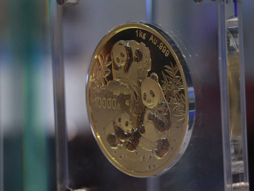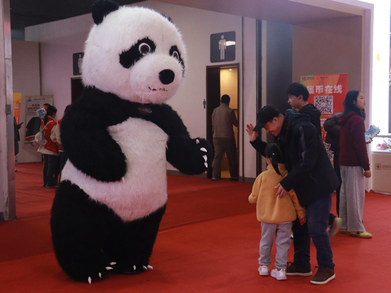 不远处,一位父亲正带着小女儿与熊猫玩偶合影。女孩伸出手去碰熊猫的爪子,父亲笑着按下快门。熊猫是中国金币的形象符号,也是这场展会最受欢迎的吉祥物。孩子的笑声混在展馆回荡的广播里,我忽然觉得,那些被金属刻录的岁月,也会被这一刻的童真重新点亮。