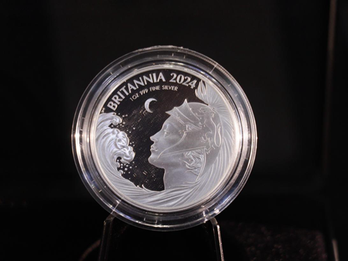 在LPM与皇家造币厂联合呈现系列中,币面上,女神面向潮汐,头盔与海浪相融。说明卡上写着:“A crescent moon represents the ebb and flow of the tides that Britannia continues to endure with fortitude and resilience.”——月亮代表潮汐的起伏,也象征着坚韧与不屈。这枚币出自法国艺术家Marie-Alice Harel之手。相比其他展品,它更像一场视觉与哲思的结合:在女性形象与自然意象的交汇间,货币不再只是金融工具,而成为文化力量的象征。