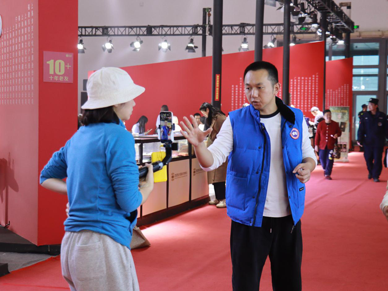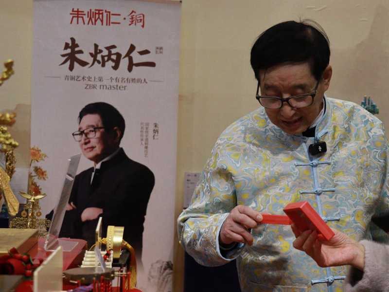 在另一侧的艺术展区,身着中式服装的老艺术家朱炳仁正与观众交流。他手中拿着一件铜雕作品,语气温和,讲述着铜的生命力与传统工艺的温度。观众安静地听着,有人悄悄录音,有人拿出纸笔记下每一句话。对匠心的敬意,在空气中缓慢流动。