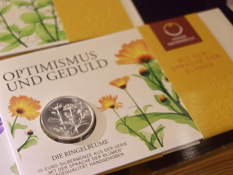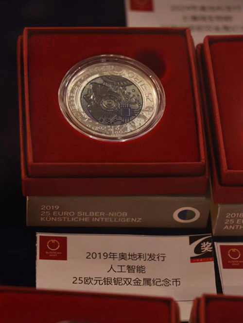 奥地利造币厂展区则更像一座微型实验室。2019年发行的人工智能纪念币,以银铌双金属结构构成“科技之眼”;深海鮟鱇鱼荧光币在灯下泛出蓝绿光泽,象征探索未知的勇气。另一侧的“花语系列”银币,将玫瑰、金盏花等自然意象融入现代设计,包装文字写着“Optimismus und Geduld”(乐观与耐心)——这是金属赋予情感的方式。在他们的作品里,硬币不再冰冷,而是一种能被收藏的哲学。