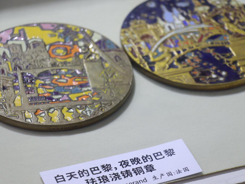 法国展区的桌面上,摆放着一套中法建交50周年纪念币。银币上刻着凯旋门与天坛,象征两种文明的交汇;金章上牡丹与鸢尾交相辉映,寓意和合之美。那一刻,我突然理解了钱币的另一种含义——它不是历史的旁观者,而是时间的见证人。在这枚小小的圆形金属上,半个世纪的外交友谊与文化交融被凝固成永恒。《白天的巴黎,夜晚的巴黎》搪瓷铜章,流动的色彩像极了塞纳河的光影——法国艺术家用金属重塑浪漫,也让人想到钱币背后那份文化自信。
