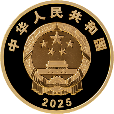 金币正面图案沿袭贵金属纪念币常规设计,画面中央为中华人民共和国国徽,并刊国名、年号,风格简洁庄重。