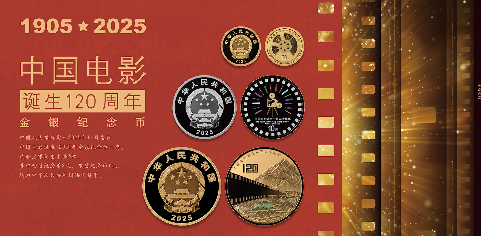 2025年,为铭记中国电影诞生120周年,联动电影行业资源,提升中国贵金属币的社会影响力,中国人民银行发行中国电影诞生120周年金银纪念币一套。该套纪念币与2005年发行的中国电影诞生100周年金银纪念币、2015年发行的长春电影制片厂成立70周年金银纪念币,共同构成了中国电影主题贵金属纪念币系列。