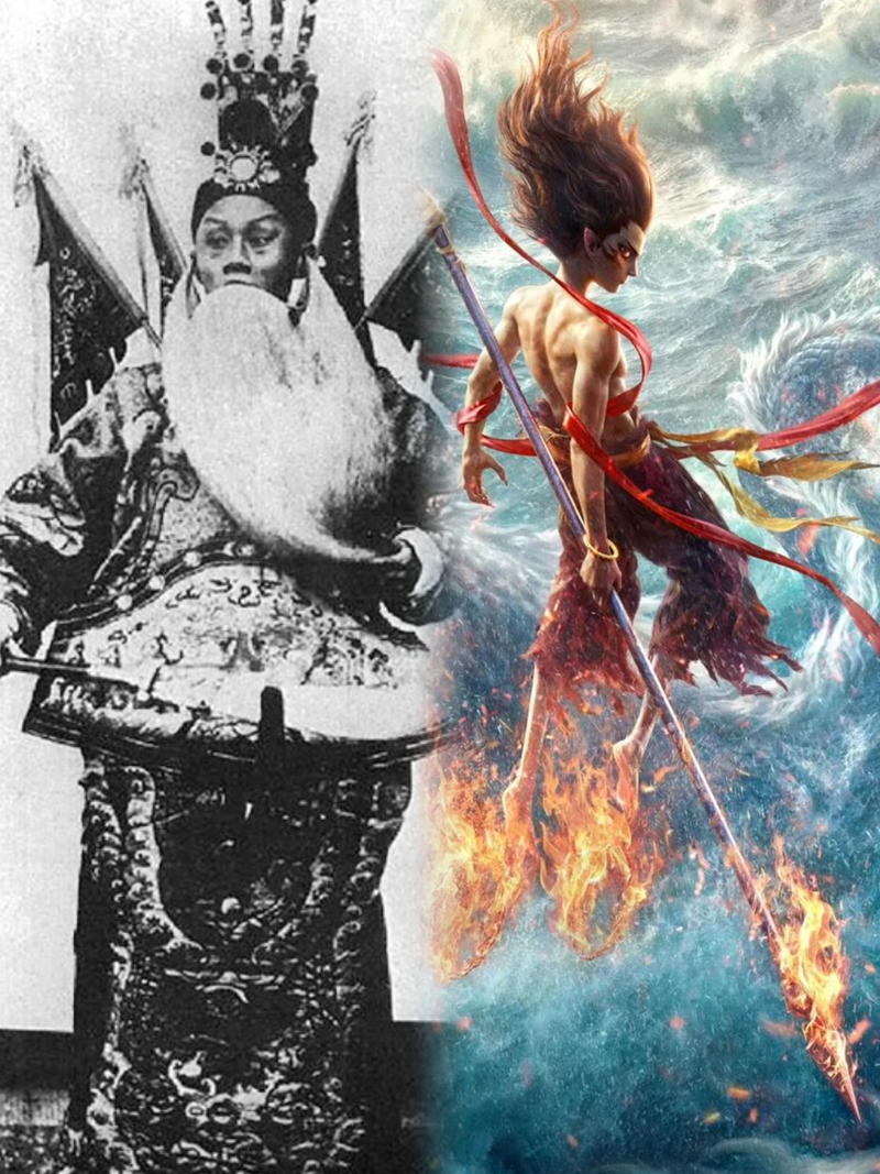 中国第一部影片《定军山》剧照与《哪吒之魔童闹海》海报