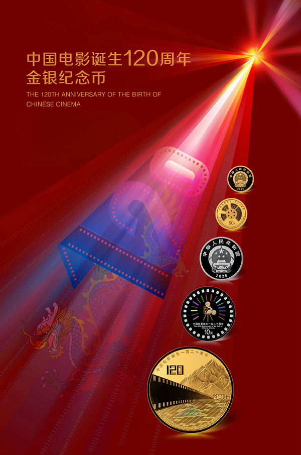中国电影诞生120周年金银纪念币的发行是对中国电影辉煌历程的崇高致敬,是对数代电影人艺术追求与卓越成就的最高肯定,是讲好中国故事、彰显文化自信的生动实践。纪念币通过精巧的设计语言,将胶片、放映机等电影元素与先进的造币工艺相结合,搭建了连接电影艺术、钱币文化与公众情感的重要桥梁,是一套承载历史、传播文化、连接大众的收藏精品。