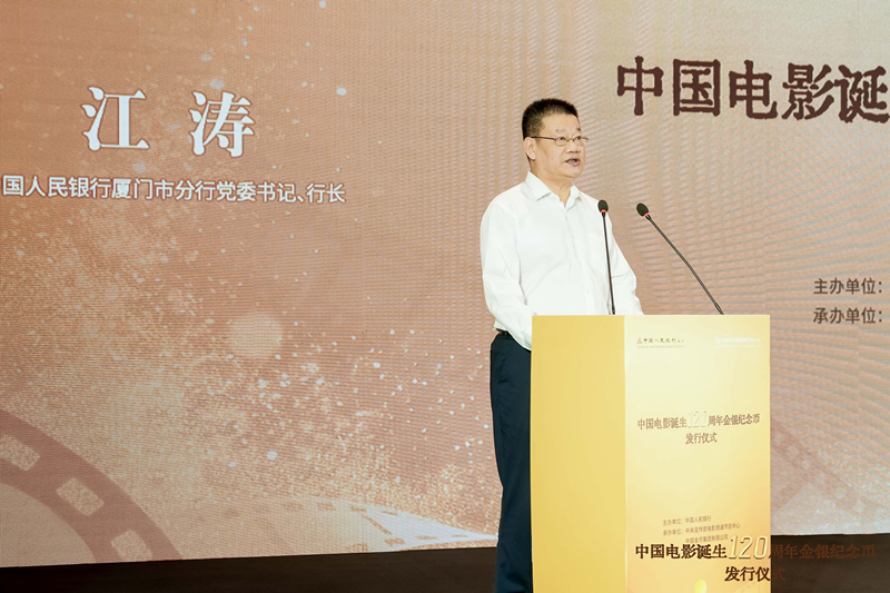 仪式首先由中国人民银行厦门市分行党委书记、行长江涛宣读中国电影诞生120周年金银纪念币发行公告,对纪念币图案、纪念币规格及发行量、铸造单位及销售渠道进行了介绍。
