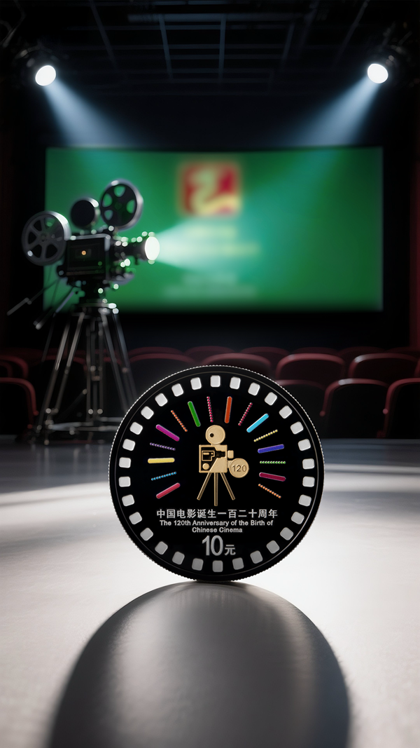 从放映机向四周辐射的多彩线条与点阵,是整个设计的点睛之笔,它们打破了静态画面的局限,赋予银币以动感和生命力。这些光束内涵丰富,它们象征着电影类型的多元共生,如喜剧的欢快、悲剧的深沉、史诗的壮丽,共同编织成中国电影绚烂的艺术图谱;它们代表着涌动的创意与丰沛的情感,每一个光点,都可能是一个鲜活的角色、一段动人的故事;它们喻示电影如阳光般照亮生活、滋养文化的精神价值。与此同时,为了唤醒人们对电影载体的经典记忆,设计师直接将电影胶片的两侧齿孔安置在币缘,似乎在告诉我们:这枚银币本身,就是一帧被定格、被珍藏的电影胶片,我们手中握着的,就是一段隽永的历史。