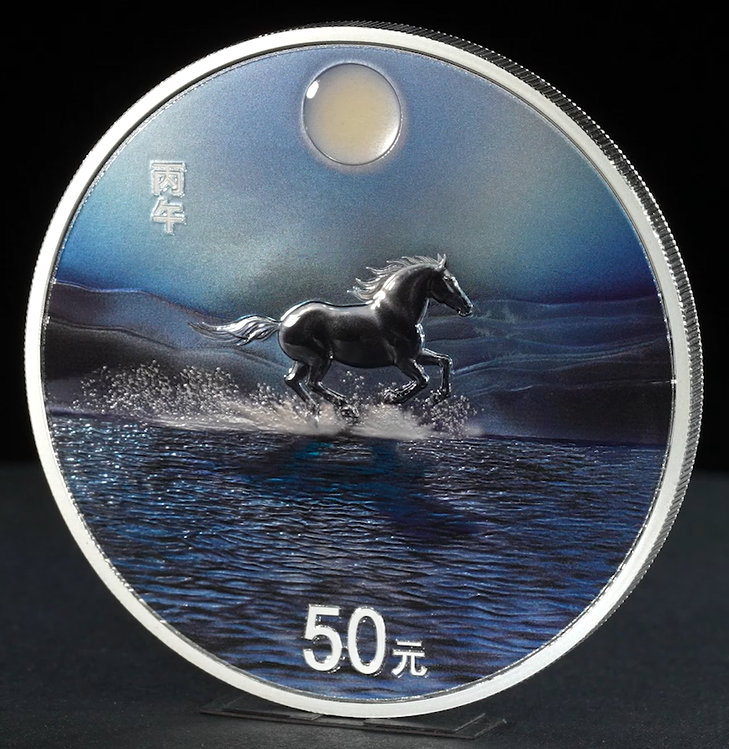 2026中国丙午(马)年150克银质纪念币背面实拍图