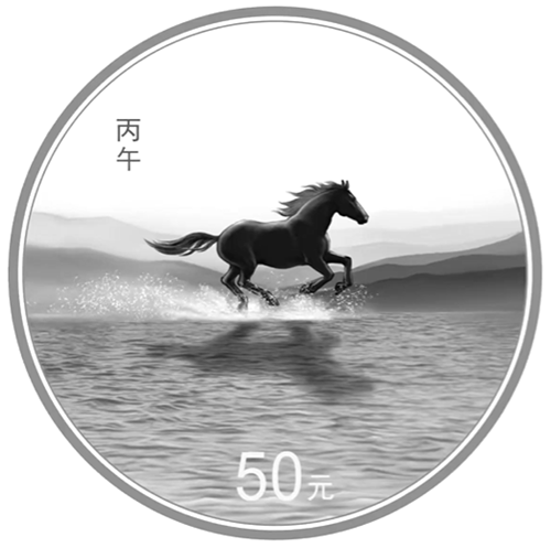 2026中国丙午(马)年150克银质纪念币背面设计图稿