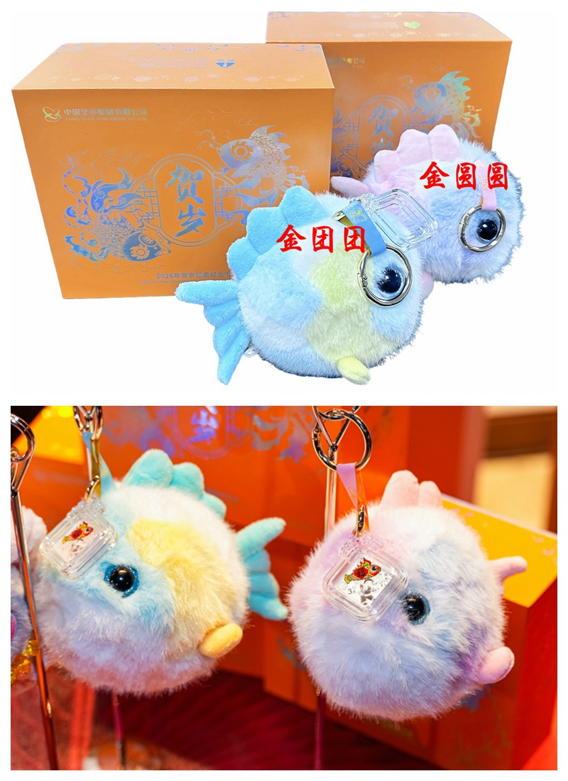 圆球版的吉祥寓意为“金玉满堂、团圆和美”,两条金鲤的名字分别为金团团和金圆圆。