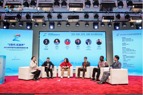 当天下午,还开设了“Z世代·见证者、创作者、传播者”多彩中国故事创享会,中央电视台主持人王慕林(埃及)、暨南大学留学生白洋(墨西哥)、东北林业大学留学生魏谢尼(俄罗斯)、华侨大学海外新声代工作室主播卫宇达(安哥拉)及南京航空航天大学留学生黄文彬(印度尼西亚)等分享了在中国的所见、所闻、所感。
