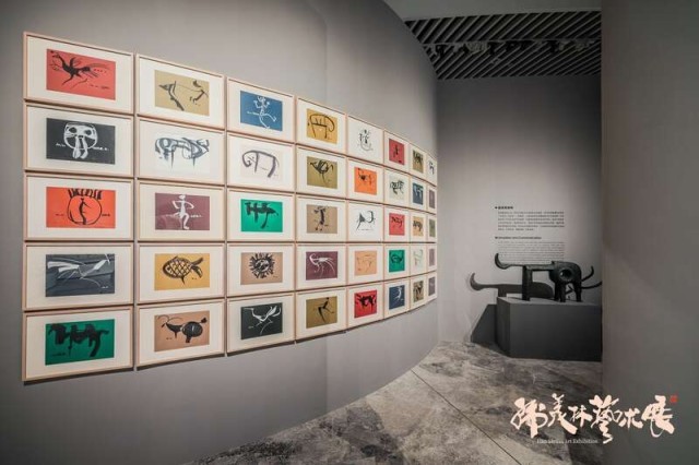 本次展览共展出作品300余件,分4个主题板块。“神遇而迹化”,以天书艺术、书法等作品,展现韩美林对远古文脉的追索;“通灵而感物”,以动物主题绘画系列,体现韩美林对自然的观察与积累;“情动而辞发”,以绘画和雕塑,将西方的造型和东方写意杂糅,强调情感乃创作之动力源泉;“意通而象成”,以跨越不同艺术门类的创作,探索艺术的边界。