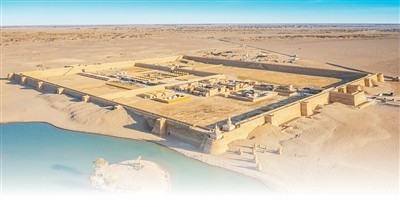清晨的阳光透过薄云,洒在内蒙古额济纳旗的广袤大漠,为古老的黑水城披上一层金色。