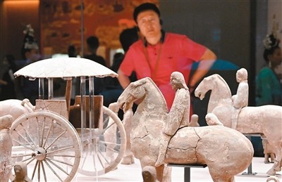 8月28日,“太保墉燕——房山琉璃河遗址专题展”在首都博物馆开幕。展览呈现了琉璃河遗址历次考古发掘出土的文物180件(套),其中首次展出的文物113件(套)。图为展出的车马坑模型。