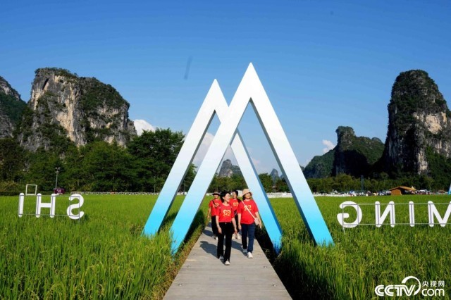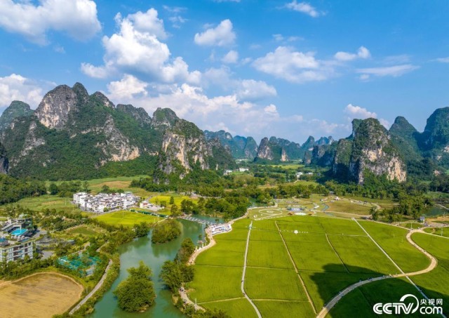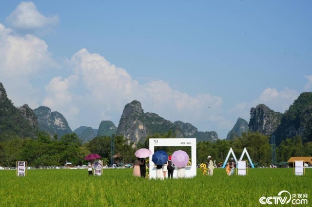 2025年10月18日,广西崇左市大新县,“欢乐田园,自在明仕”2025年第七届大新明仕田园丰收节在广西崇左市大新县堪圩乡明仕旅游度假区开幕。丰收的田园与喀斯特山水相映成趣,宛如一幅美丽的丰收画卷,吸引众多游客慕名前来体验游玩。视觉中国
