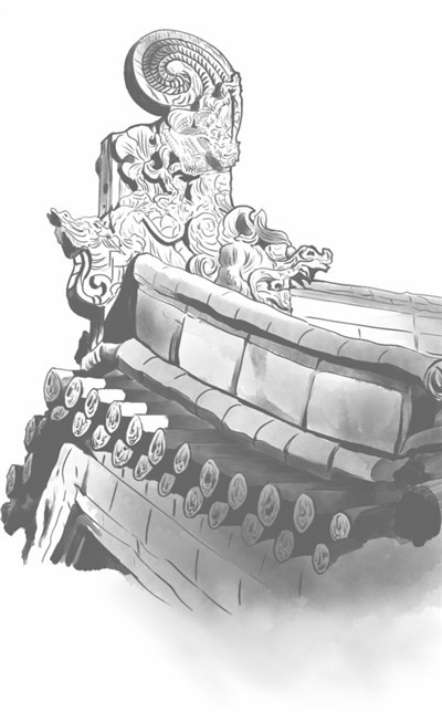 介休后土庙古戏台屋脊。