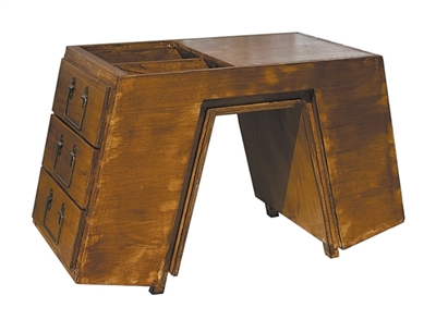 再看看这件“卢沟桥”药驮子模型(见图③)。1938年,白求恩带着它穿梭在晋察冀的崇山峻岭间。这个药驮子设计精巧,两个驮箱分为20多个独立小格,可整齐容纳100次手术、500次包扎所需的器械与药品,在战地只需搭起一块门板,就能即刻变身为临时手术台。