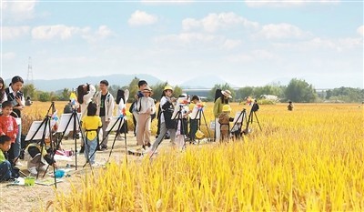 良渚古城遗址公园写生活动现场。