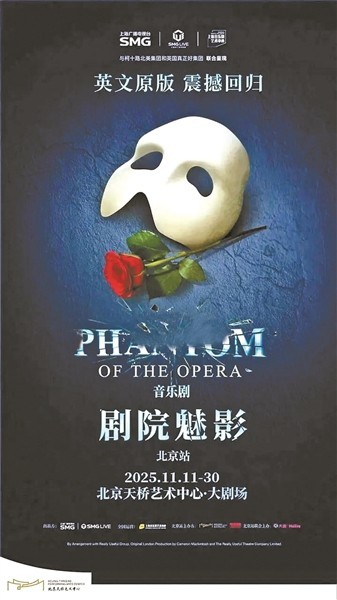 本次戏剧市集将打破传统剧场空间限制,在天桥艺术中心全域打造沉浸式演出环境。届时,不同门类的演出将轮番上演,小柯剧场经典音乐剧《西大钟下》再现舞台,诗词主题演出《清平调》《如梦令》等精选片段也将同期亮相。值得关注的是,十年三度来京演出的英文原版音乐剧《剧院魅影》将再度亮相,演出将以全新阵容呈现,通过升级的舞台设计与制作,展现这一经典剧目的持久魅力。