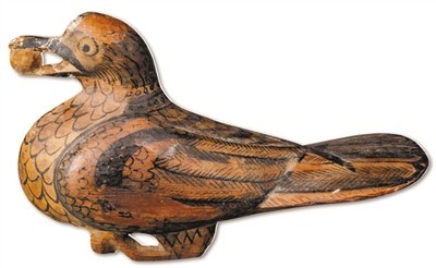 比如展柜中并列放置的王杖诏书令册简和彩绘漆木鸠,对于研究汉代社会制度、法制史、民俗学具有重要的参考价值。王杖诏书令册简正面有556个字,内容丰富,记载明确,既有抚恤鳏寡孤独废疾之人的具体做法,又有尊老养老的明确规定——赐予年事已高者王杖。王杖诏书令册简相当于汉代的“养老令”,而彩绘漆木鸠则可看作“敬老卡”。