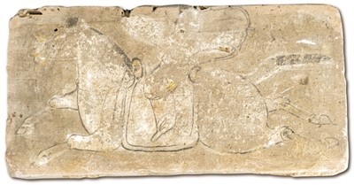 出土于佛爷庙湾—新台地墓群的骑射图画像砖和中矢山虎画像砖最吸引观众。前者绘飞将军李广正策马回身射箭,后者绘一只脖颈已中箭的山虎,圆睁双眼,血口大张,躯体的一半仍隐没于山林之中,两图合起来是对卢纶那首《塞下曲》的生动阐释:“林暗草惊风,将军夜引弓。平明寻白羽,没在石棱中。”山虎身形修长,四肢矫健,前肢处似生羽翼,这种奇异的造型暗示它超出凡兽。通过战胜具有神性的山虎,李广自然而然成为勇猛的化身。有学者认为,河西走廊为丝路交通要道,商贸往来频繁,为避免土匪恶霸侵扰,亟须武力保护,当地百姓祈盼英雄的降临,故而选定李广作为他们的护佑,成为崇拜的对象。