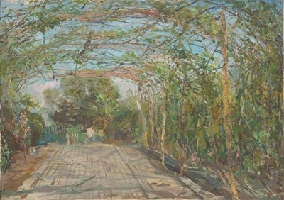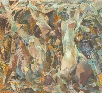 稍早一年创作的《长春植物园》则提示我们,袁运生自发地关注着自然。与西方风景画或浪漫派不同,袁运生艺术的自然从起初便携带了一种细微但强力的精神自然——当然,西方风景画的精神自然也很充沛,但那是另外一回事。画面中,透视消失点所在区域的构图,被不成比例地突出了出来,仿佛使我透过自然的层次,体味到人的层次。袁运生艺术中内含的精神自然意味着,自然作为容器,人作为动力。此刻,社会主义的人定胜天、文艺复兴的对人的发现,在这里结合在了一起。