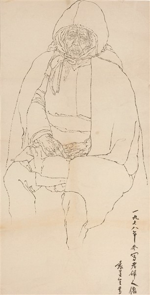 袁运生的主题不是对空间、对未知的,而是对人、对已知的。所谓人的艺术,并不在于其理想、其进步,而在于富有节奏地容纳所有可把握、不可把握的事物,以及往生、未续的时间。稍早前的《云南白描寿星婆婆》《云南白描女青年》更加应和这一点。这些作品并非对形体精神的写生,而是对印象的写生。这是一整套的工作方法:对艺术家的解放,对艺术的自信,对加于艺术的种种设定(从现实主义到先锋派)的放逐,而后,行动注入每一个行动和笔画中,意义注入每一个觉察与观赏中。