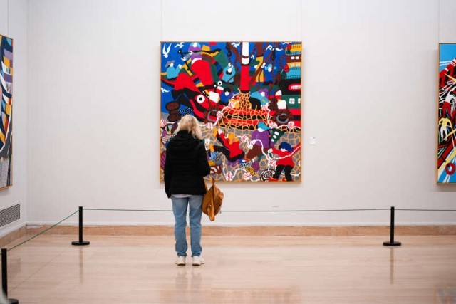 本次展览汇集舟山近十年来的67件渔民画代表性佳作,围绕“耕耘”“和美”“新曲”三大主题,勾勒出渔民耕海牧渔的劳作图景、渔村风俗与民间温情,以及新时代舟山发展新貌与变迁。