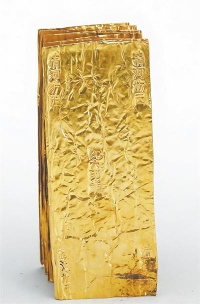 此次展览展出了部分带有临安地名的由金银盐钞引交易铺铸造的货币。比如,有“清河坊西”戳记的金叶子,外形类似于折页状金箔,为南宋时期的金质货币。当时金银铺竞争激烈,店铺会在金银货币上戳打铺号铭文,以彰显自家产品的高品质和信誉。据文献记载,黄金货币主要用于兑换钞引、赋税、上供、军费、国费开支等,是研究南宋金融经济史的重要物证。