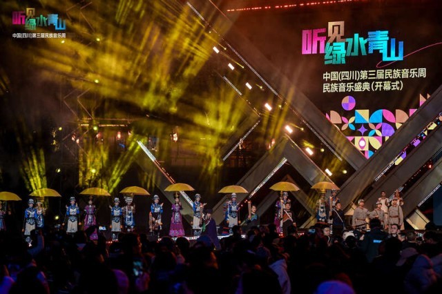 音乐盛典上,民歌联唱《太阳出来喜洋洋》再次唱响,拉响了第三届民族音乐周大幕,10余个民族的演员参加表演。节目中,既有“四川盘子”“川江号子”和四川民歌、川剧创演,也有国潮新形式——爵士戏曲,国粹京剧、民乐唢呐结合西洋爵士、蓝调乐团,演绎融合之美;既有彝族克智、佤族说唱、蒙古族呼麦、彝族高腔、摩梭阿哈巴拉调等民族经典音乐形式,也有以云南哈尼族、布朗族音乐为基底,融入现代流行音乐的“雷鬼节奏”。