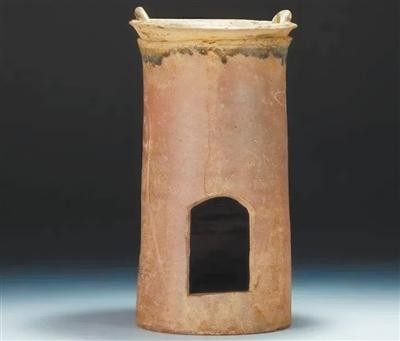 原始瓷灶最早出现在商代,到东汉时期更加成熟。馆藏的东汉原始瓷灶引人注目。这件藏品高11.7厘米,长15.0厘米,系陪葬用的冥器,由火膛和烟囱及灶体组合而成,灶体上再承一双耳釜及敛口釜,是东汉时期灶台的真实写照,反映了东汉时期流行的煮茶习俗。据文献记载,东汉时期饮茶已在南方四川一带的士人之间流行,以釜煮茶应是当时的饮茶方式之一,称为“茗粥”。