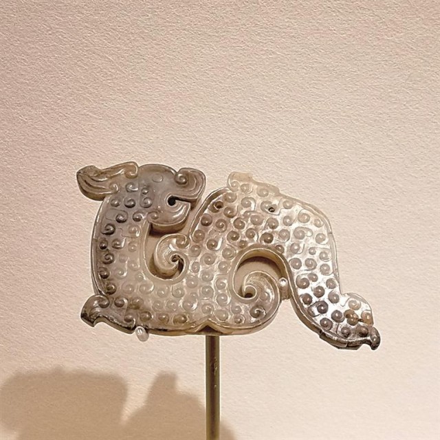 楚国贵族的精致体现在生活的方方面面。展厅中别致的青铜镂孔熏杯,就是古代的“扩香器”。熏杯是楚地常见的小型熏香器具,流行于战国时期,楚人会将香草置于其中,通过熏烧以散发香气,避瘟祛邪。而展厅中的玉龙形饰、玉璧等玉饰,还原了《楚辞》中“佩缤纷以缭转兮”的画面,仿佛能听到楚国贵族佩戴组玉佩,缓缓走动时佩玉将将的清响。