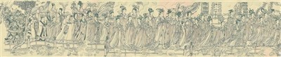 或许令人意外的是,徐悲鸿纪念馆的镇馆之宝并非他自己的作品,而是他收藏的一幅没有署名落款的人物长卷。徐骥讲述了这幅画背后的传奇:1937年,徐悲鸿在香港举办画展,偶然得知一位德籍马丁夫人藏有大量中国古书画,正在寻找买主。向来喜好收藏古书画的徐悲鸿满心欢喜前去探看,一眼便相中了一幅没有任何署名的白描人物长卷。最终,他以一万元现金加上自己的七幅画作为交换,买下了这幅画。这幅让徐悲鸿不惜代价求得的长卷,属于绢本白描人物画,画面主体共有八十七位人物,徐悲鸿将其命名为《八十七神仙卷》。