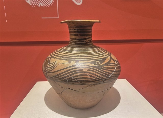 记者注意到,“从黄河到天山——史前彩陶的西渐之路”文物大展中展出的彩陶虽相隔千里,但始终贯穿着相似的审美法则、信仰表达与工艺智慧。