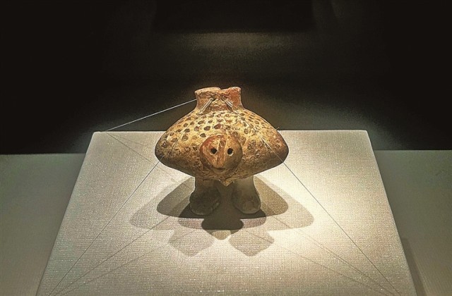 鹰首彩陶壶 本报记者尚杰摄/光明图片